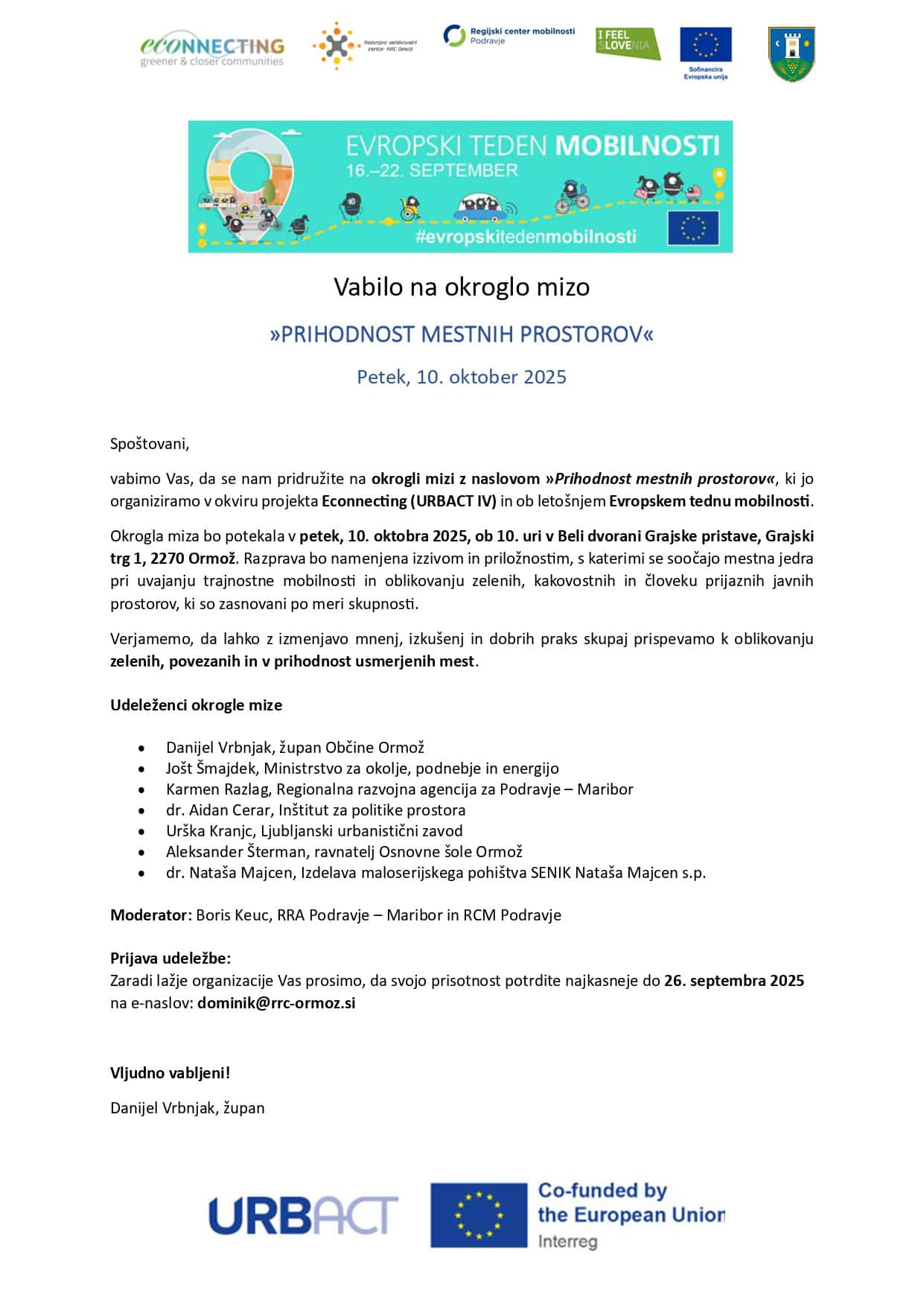 Vabilo na okroglo mizo “PRIHODNOST MESTNIH PROSTOROV”